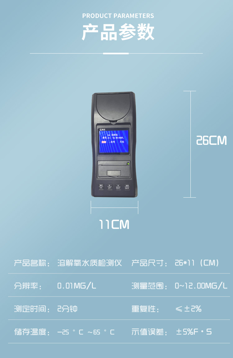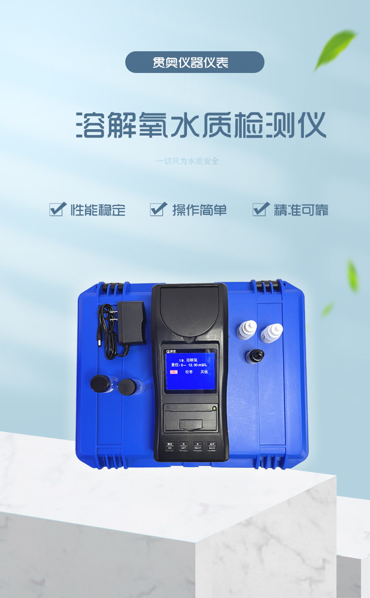溶解氧水質(zhì)檢測儀主要用于飲用水中的溶解氧參數(shù)的測定。本儀器可廣泛用于水廠、養(yǎng)殖、環(huán)保等行業(yè),是常用的戶外及實(shí)驗(yàn)室水質(zhì)檢測儀器。